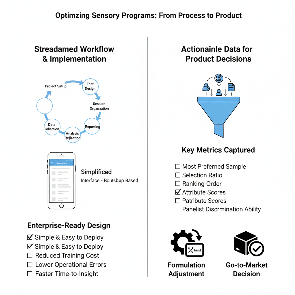 Dựa trên nền tảng khoa học cảm quan hiện đại kết hợp phân tích dữ liệu và công nghệ số, chúng tôi phát triển các giải pháp giúp doanh nghiệp hiểu sâu về trải nghiệm người tiêu dùng, tối ưu thử nghiệm sản phẩm và nâng cao độ tin cậy của mọi kết luận nghiên cứu.